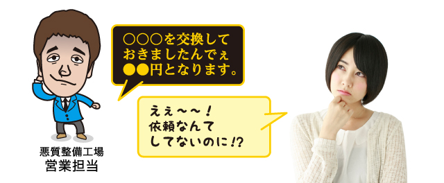 お客様に選択権の無い追加整備にご注意! 相談無く部品交換をされ、車検終了後に