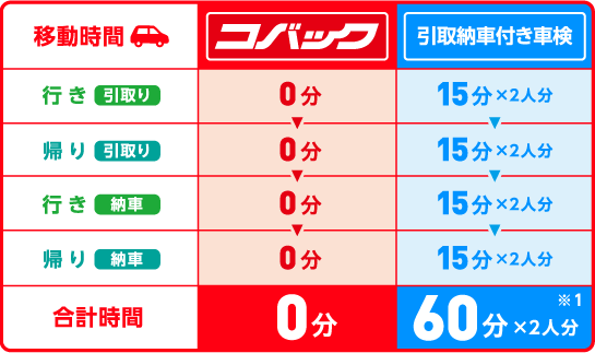 プラスされている。 ※引取納車はお客様のお車を運転するため2人体制で行うので2人分で計算。