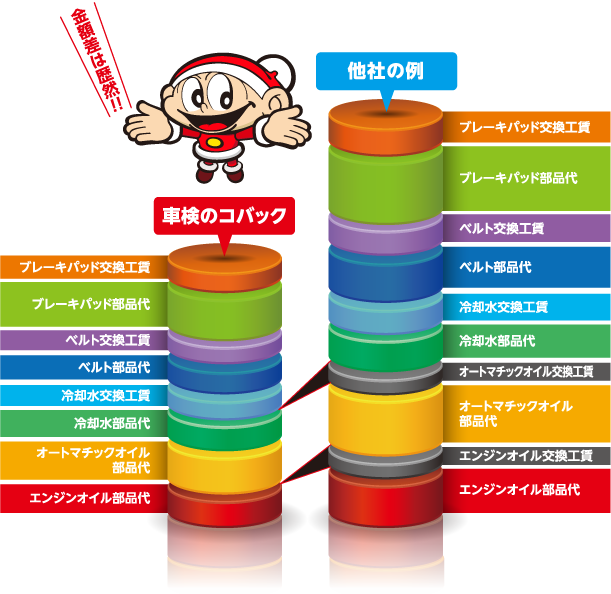 コバック車検に必要な費用は、「車検基本料」と「国に支払う費用」だけです。